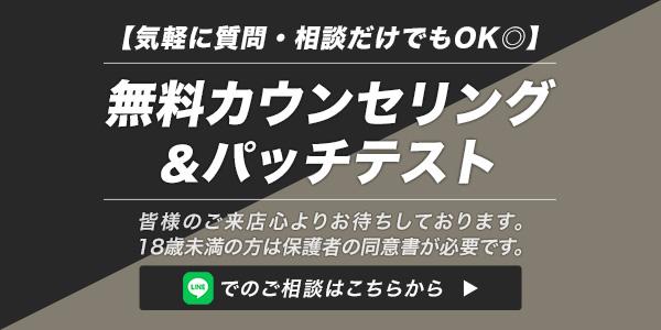 30分カウンセリングに加え、お客様からの質問へのお応えや、料金についてもご案内します。その場でお申込みされても、家でゆっくりご検討いただいても大丈夫です。パッチテストも可能です。
