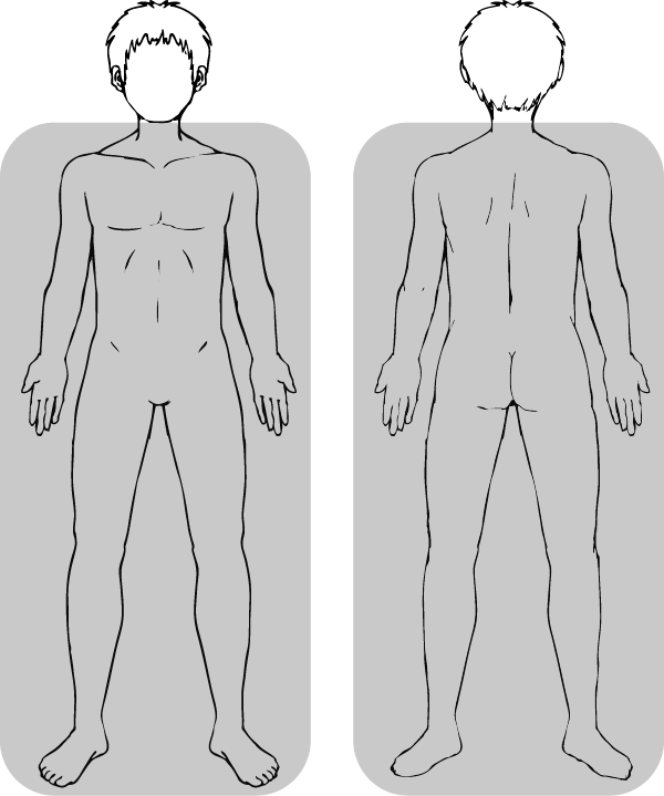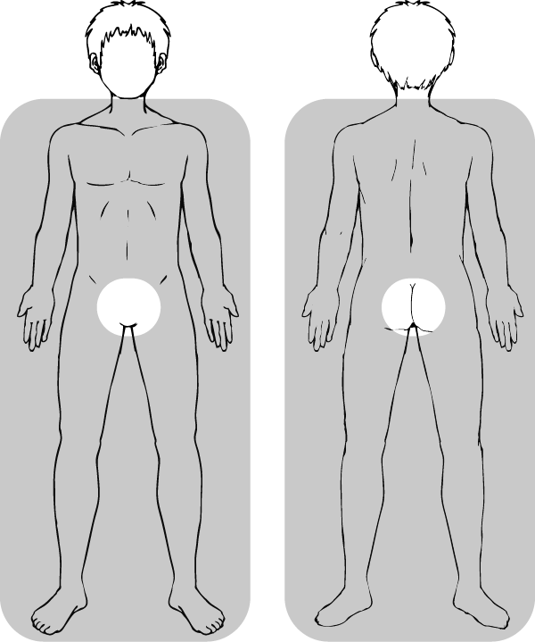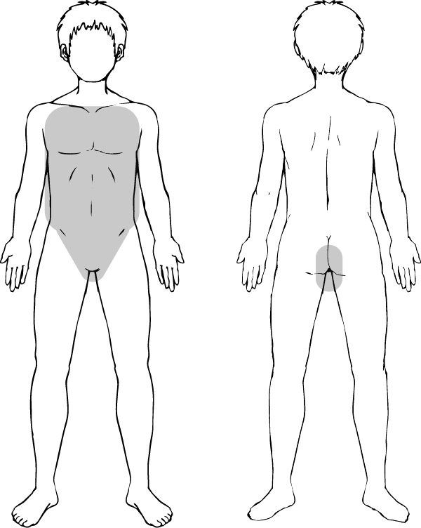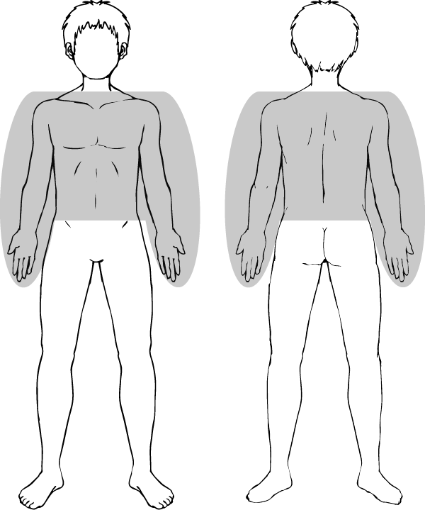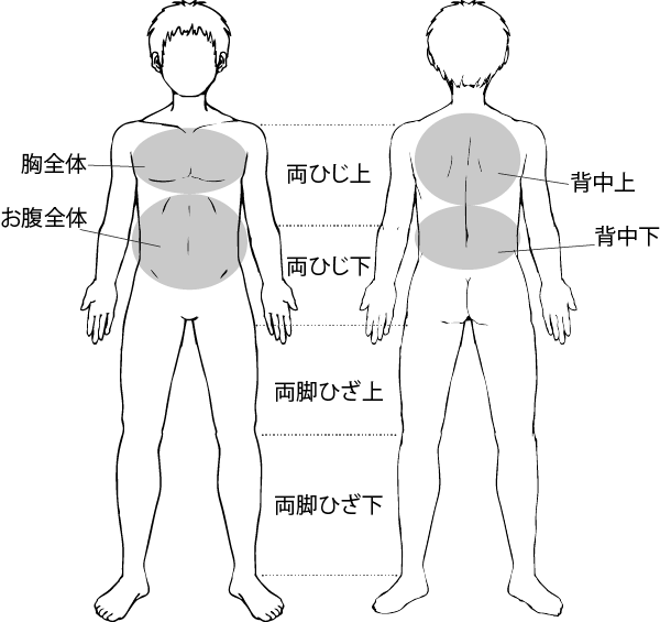 胸全体・おなか全体・背中上・背中下・両ひじ上・両ひじ下・両脚ひざ上・両脚ひざ下の中から1つ