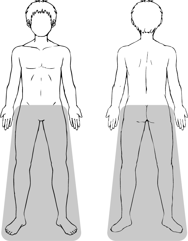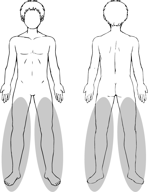 足全部(太もも~足指まで)。前日のシェービングをお願い致します。